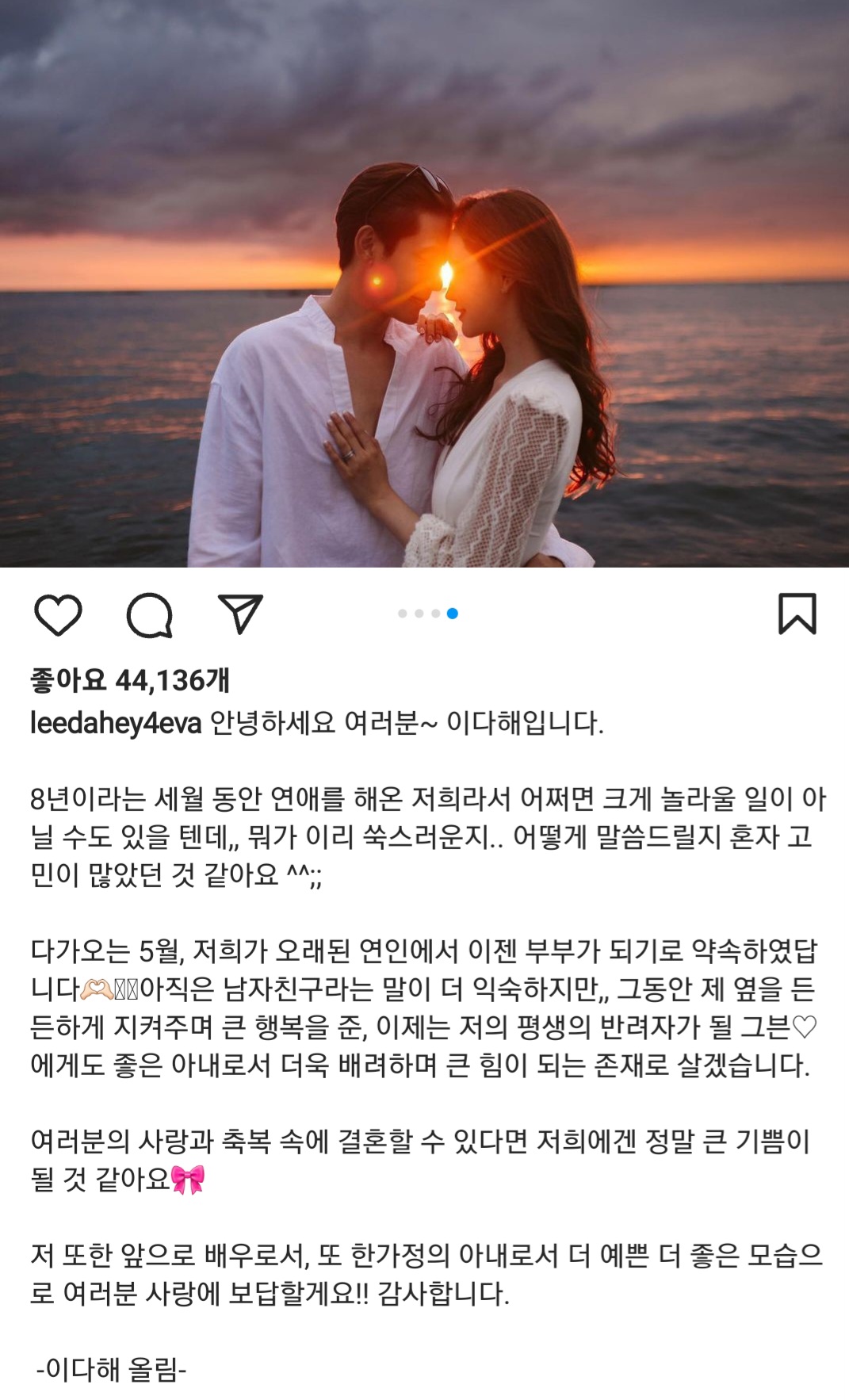 2023년 5월 6일 결혼 발표를 하였습니다.